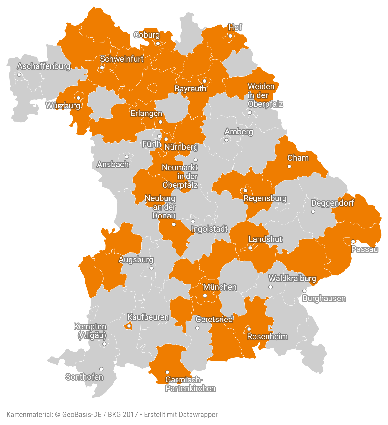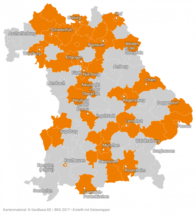 - Niederbayern: Freyung-Grafenau, Landshut, Passau, Rottal-Inn