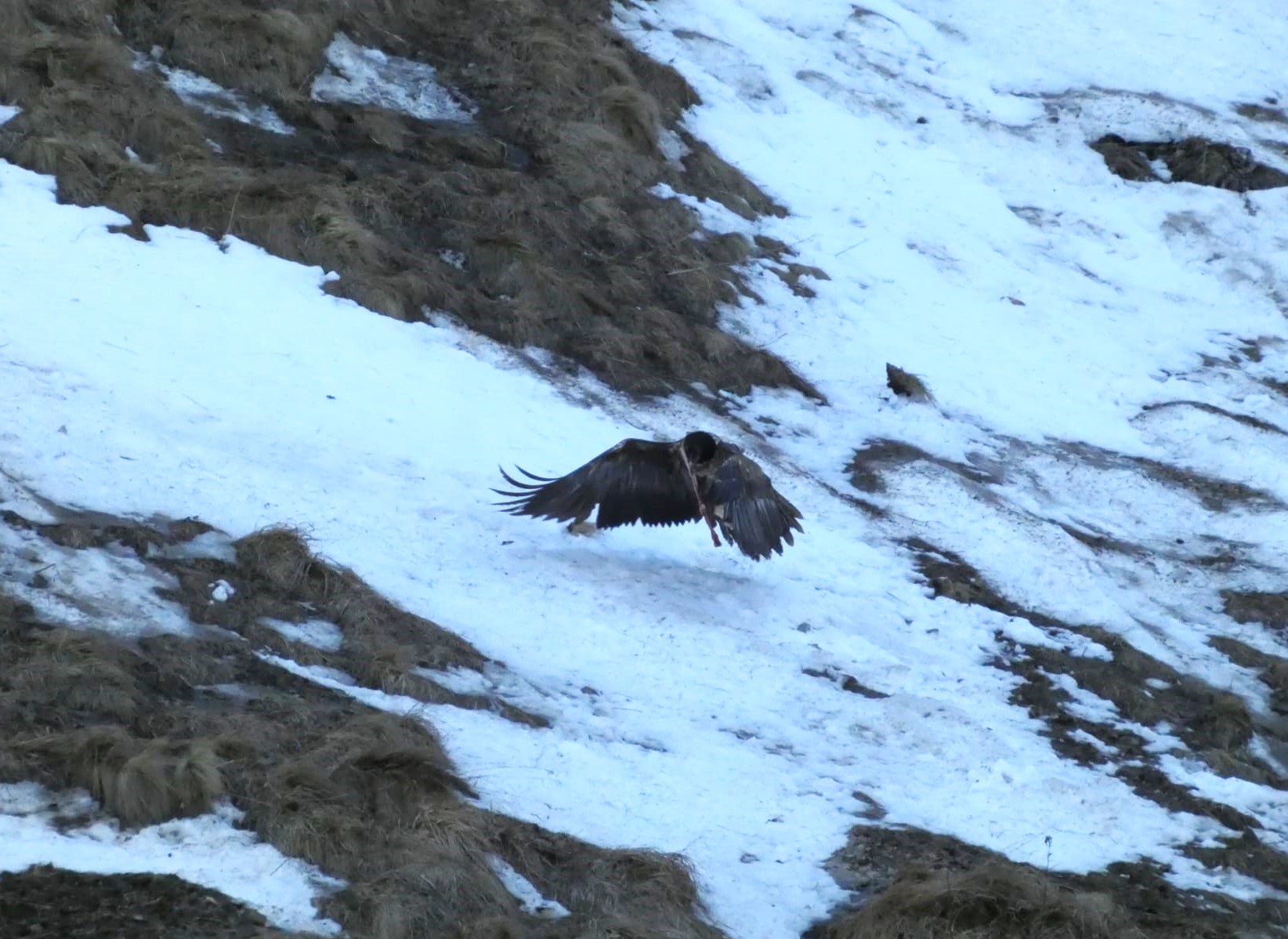 Das Monitoring Team hat sich vergangene Woche auf den Weg gemacht, um sich ein Bild von ihr zu verschaffen und war auch prompt erfolgreich. Sisi tauchte relativ bald in einem etablierten Bartgeierrevier auf und präsentierte sich dem Team aus nächster Nähe. Dabei kreiste sie quasi direkt über der Beobachterin und konnte auch beim Transport eines großen Knochens fotografiert werden.