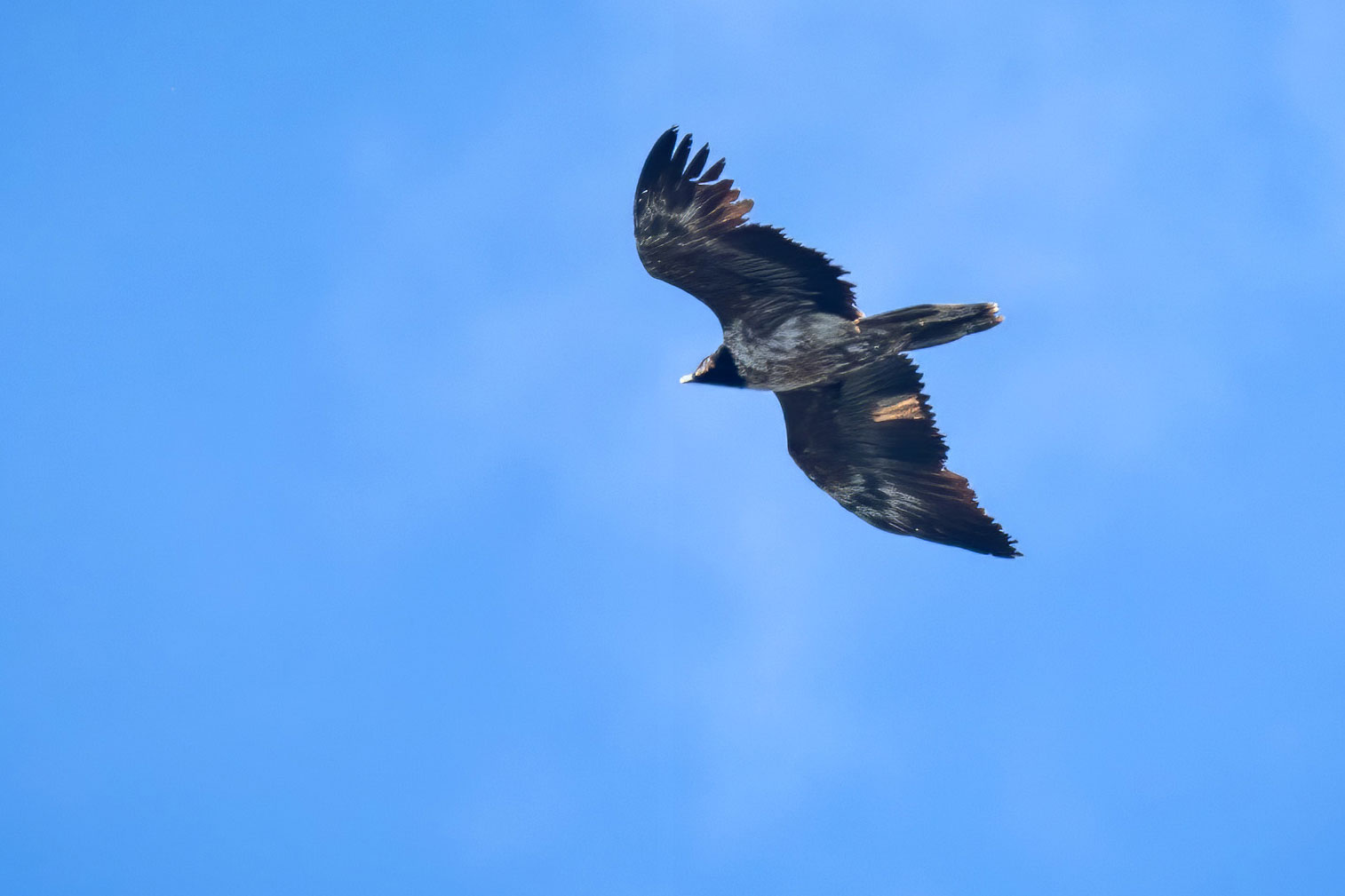 Auf dem letzten Bild, das wir von Dagmar erhalten haben (Stand Ende April 2025), ist die Markierung am rechten Flügel (17-19) nur noch rudimentär zu sehen. Noch undeutlicher erschienen auf dem Foto die ehemals linksseitig gefärbten Schwanzfedern. Es ist gut möglich, dass aktuell (Herbst 2025) nach Abschluss der heurigen Mauserphase beide Markierungen gar nicht mehr zu erkennen sind.