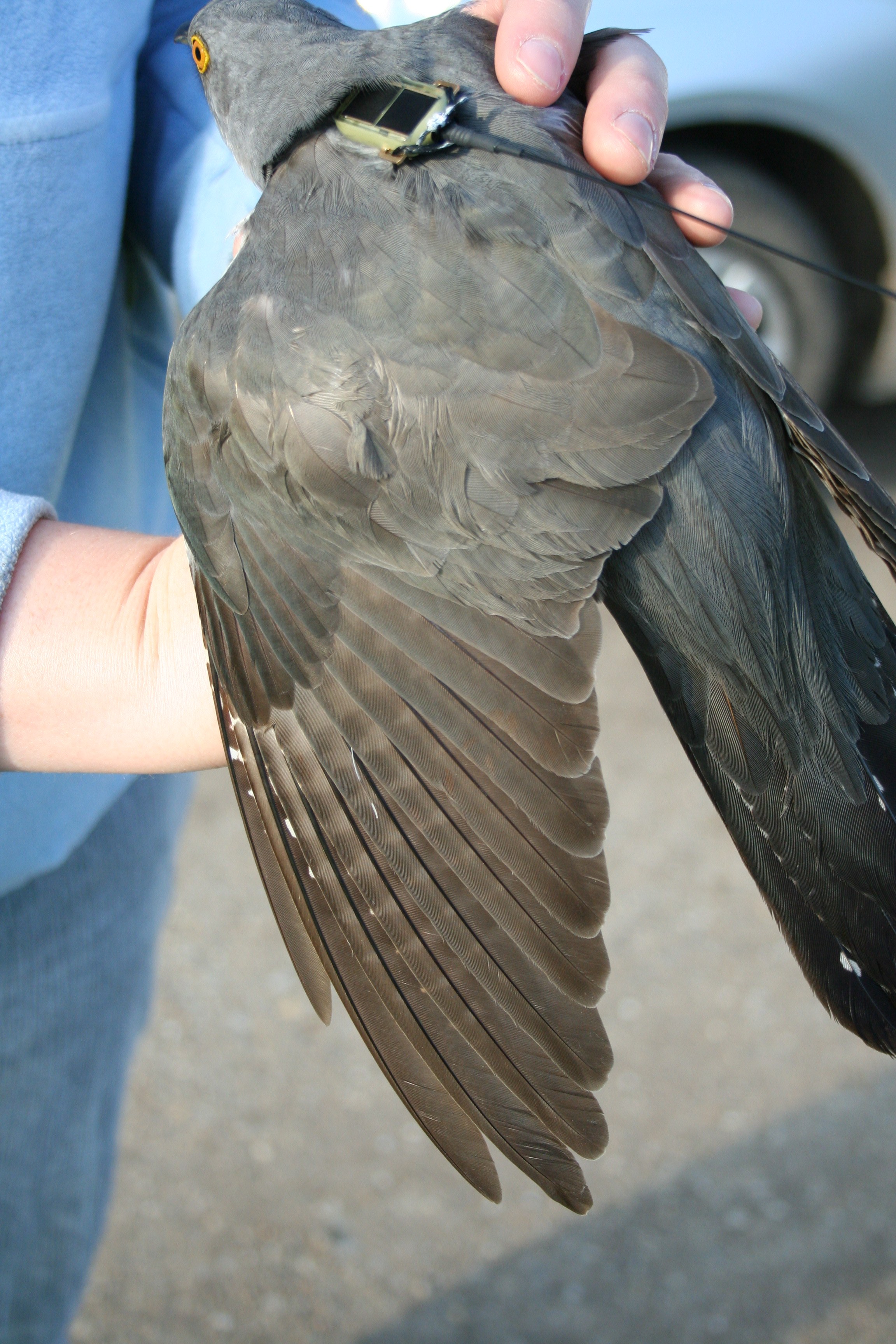 Im Landkreis Regensburg führten Friederike Herzog (LBV) und Heinz Armer, ehrenamtlicher Mitarbeiter der Vogelwarte Radolfzell, wohnhaft in Fürth, die letzten zwei Tage eine weitere erfolgreiche Fangaktion durch. Ein männlicher Kuckuck konnte hierbei besendert werden und zwei bereits besenderte Tiere konnten mittels eines Handscanners, welcher an eine Antenne angeschlossen wurde, telemetriert, d.h. ihr Aufenthaltsort bestimmt werden.