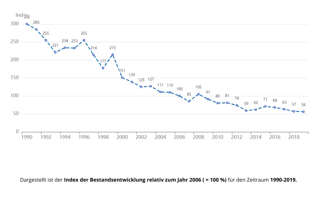 [Quelle: Dachverband Deutscher Avifaunisten (2022): Bestandsentwicklung, Verbreitung und jahreszeitliches Auftreten von Brut- und Rastvögeln in Deutschland. Dachverband Deutscher Avifaunisten, www.dda-web.de/voegel/voegel-in-deutschland., aufgerufen am 24.03.2023.]