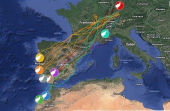 Die von uns beobachteten Jungvögel haben häufig irgendwo eine Rast eingelegt oder sind zickzack-Routen geflogen. In Portugal ist er direkt über das beliebteste bayrische Wintergebiet, das Estuario do Sado südlich von Lissabon, drübergezogen und hat dann eine ungewöhnliche Route über den offenen Atlantik bis nach Marokko gewählt. Aufgrund der Distanz zur Küste kann man davon ausgehen, dass er diese nicht die ganze Zeit sehen konnte.