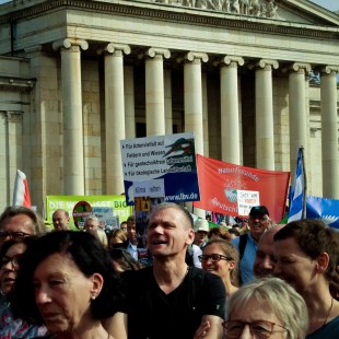 Unter dem Motto „Mia ham’s satt“ demonstrierten eine Woche vor der Landtagswahl 18.000 Menschen auf Münchens Straßen gemeinsam mit einem Bündnis aus über 80 Organisationen für eine ökologische, tiergerechte, bäuerliche Landwirtschaft und gesundes Essen, für nachhaltige Mobilität, für saubere Luft und Klimaschutz, lebenswerte Städte und den Erhalt unserer vielfältigen Kultur- und Naturlandschaft.