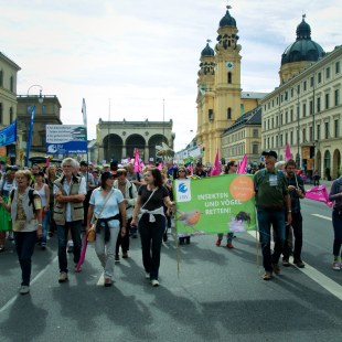 Bei der Kundgebung sprachen Dr. Norbert Schäffer (Landesbund für Vogelschutz e.V.), Moritz Angstwurm (BUNDjugend), Chris Methmann (Campact), Richard Mergner (BUND Naturschutz in Bayern e.V.), Gertraud Gafus (Arbeitsgemeinschaft bäuerliche Landwirtschaft e.V.), Walter Haefeker (Europäischer Berufsimkerverband), Roman Kolar (Deutscher Tierschutzbund), Helga Stieglmeier (AufgeMUCkt), Bernadette Felsch (ADFC Bayern e.V.).