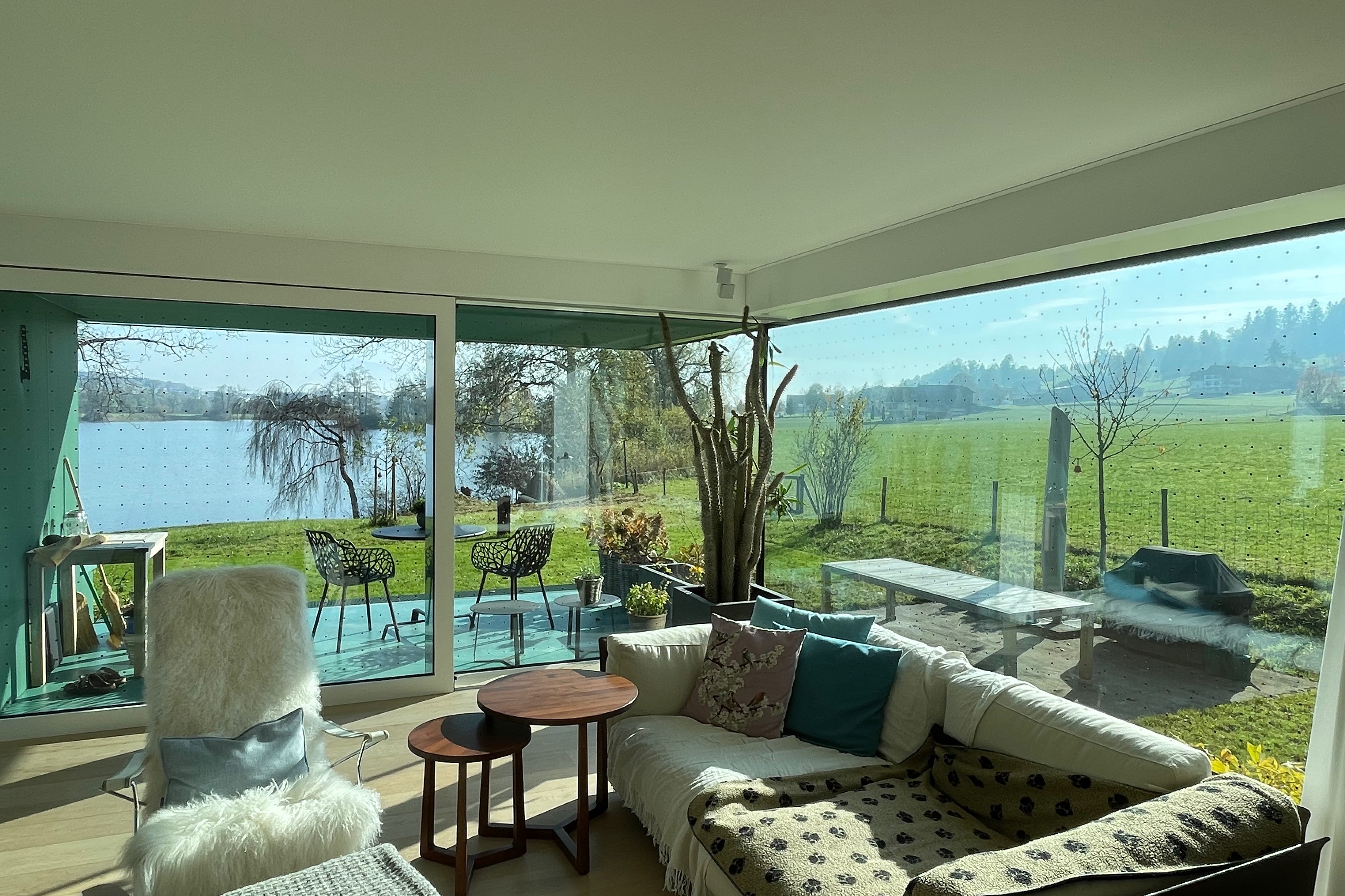 Die Punkte bedecken weniger als ein Prozent der Fläche und sind daher von außen kaum sichtbar, von innen wirken sie wie ein dezentes Muster. Erhältlich sind die sogenannten SEEN-Elemente im LBV-Naturshop.
