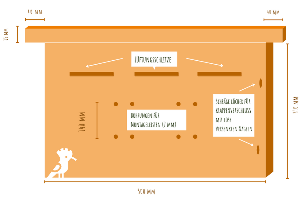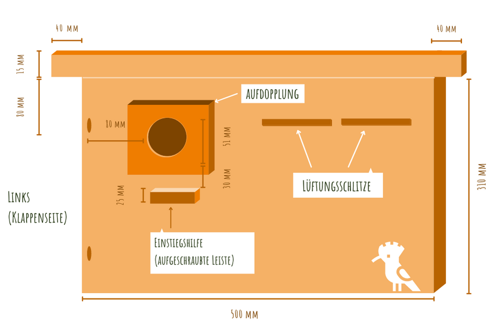 Die Maße des Nistkastens sind als Richtwerte zu verstehen