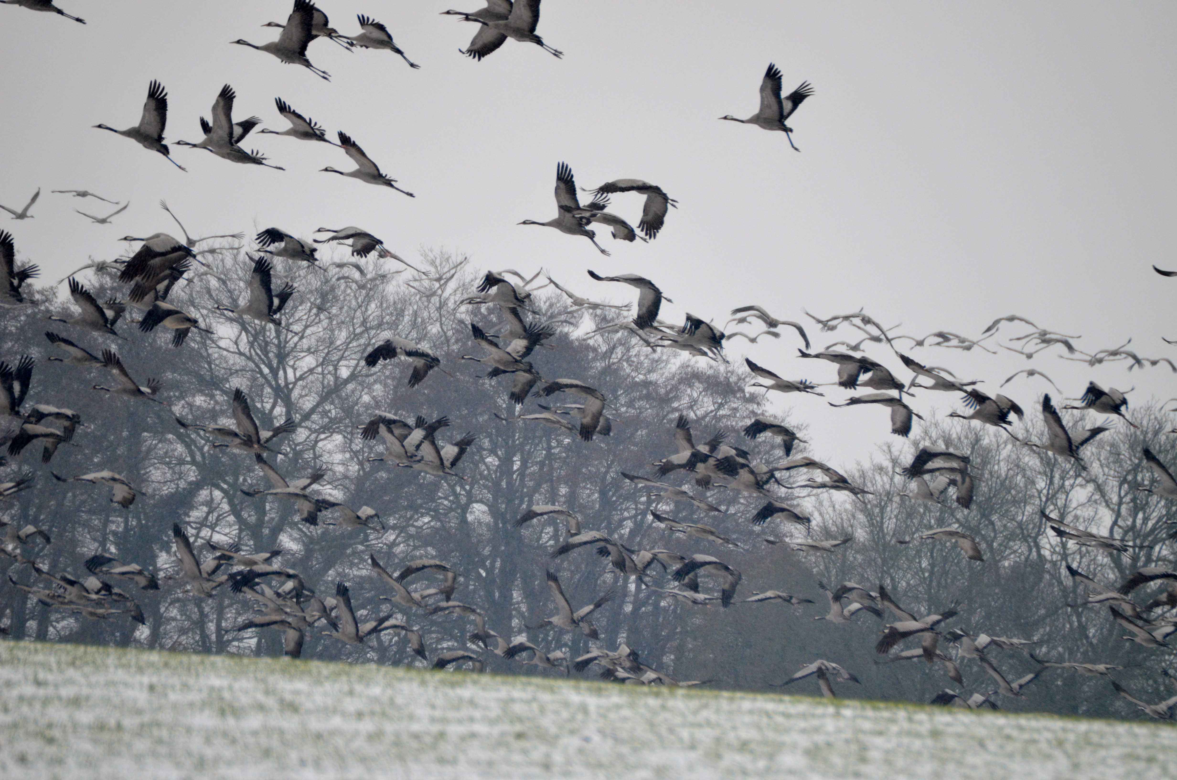 Deutschland- und europaweit ist der Zug der Kraniche in vollem Gange. Auf ihrer neuen Route entlang des Alpenrandes nach Westen wurden am gestrigen Nachmittag und Abend über München, Augsburg und Neu-Ulm erste größere Trupps der ruffreudigen Zugvögel beobachtet.