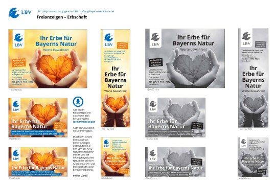 Der LBV ist ein parteipolitisch unabhängiger und gemeinnütziger, bayerischer Naturschutzverband. Unsere Arbeit finanzieren wir aus Mitgliedsbeiträgen und Spenden. Durch die kostenlose Veröffentlichung dieser Anzeigen helfen Sie dabei, gemeinsam Bayerns Natur zu schützen. Bei Fragen oder Rückmeldungen freuen wir uns über Ihre Nachricht an marketing@lbv.de. Vielen Dank!