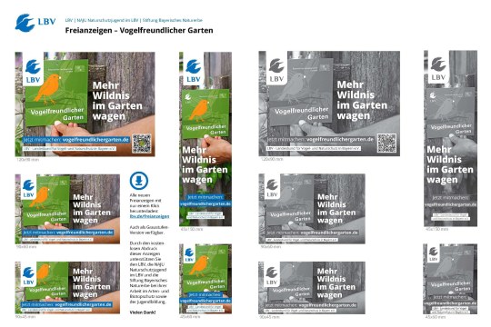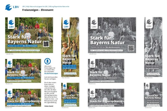 Sie sind LBV-Fan, Naturfreundin oder Naturfreund und arbeiten bei einer Zeitung oder einem Magazin, vielleicht sogar in der Anzeigenabteilung? Sie engagieren sich in einer LBV-Gruppe oder einem anderen Verein und sind dort für das Mitgliedermagazin zuständig? Dann unterstützen Sie uns mit dem Abdruck einer kostenlosen LBV-Freianzeige! Mit Ihrer Hilfe können wir mehr Leserinnen und Leser für spannende und saisonale Naturthemen begeistern. Auf dieser Seite finden Sie eine große Auswahl an Motiven und Themen.