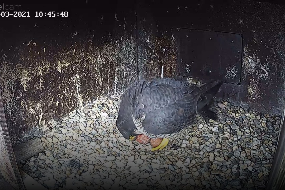 In den stürmischen frühen Morgenstunden des 12.3.2021 hat unsere Wanderfalkendame das erste Ei gelegt! Nun werden in den nächsten Tagen noch zwei bis drei weitere Folgen, bis das Gelege (etwa vier Eier) vollständig ist. Ab dann wird auch bebrütet. Also nicht besorgt sein, wenn die Falken die Eier für längere Zeit allein oder ohne Wärme lassen, das ist ganz normal.