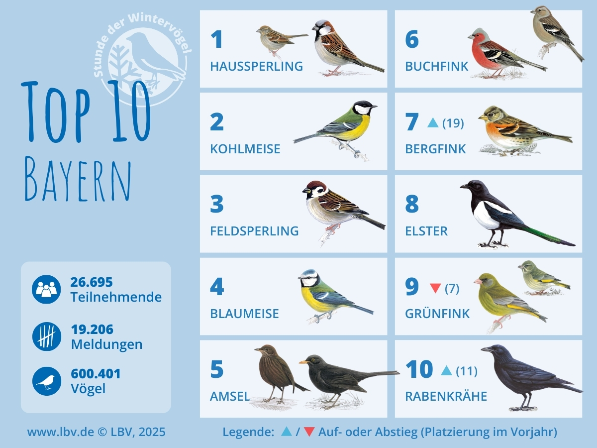 Je mehr Menschen mit machen, desto mehr können wir über unsere heimische Vogelwelt herausfinden. Teile unsere Social Media Sharepics auf deinen eigenen Kanälen und hilf mit, noch mehr Vogelfreunde und - freundinnen für die Stunde der Wintervögel in Bayern zu begeistern! Unten findest du Bilder für die gängigsten Social Media Kanäle in passenden Formaten zum Download.