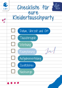 Hier gibt es eine umfangreiche praxiserprobte Checkliste, an der sich das Organisationsteam orientieren kann, um eine erfolgreiche schulinterne Kleidertauschparty auf die Beine zu stellen.